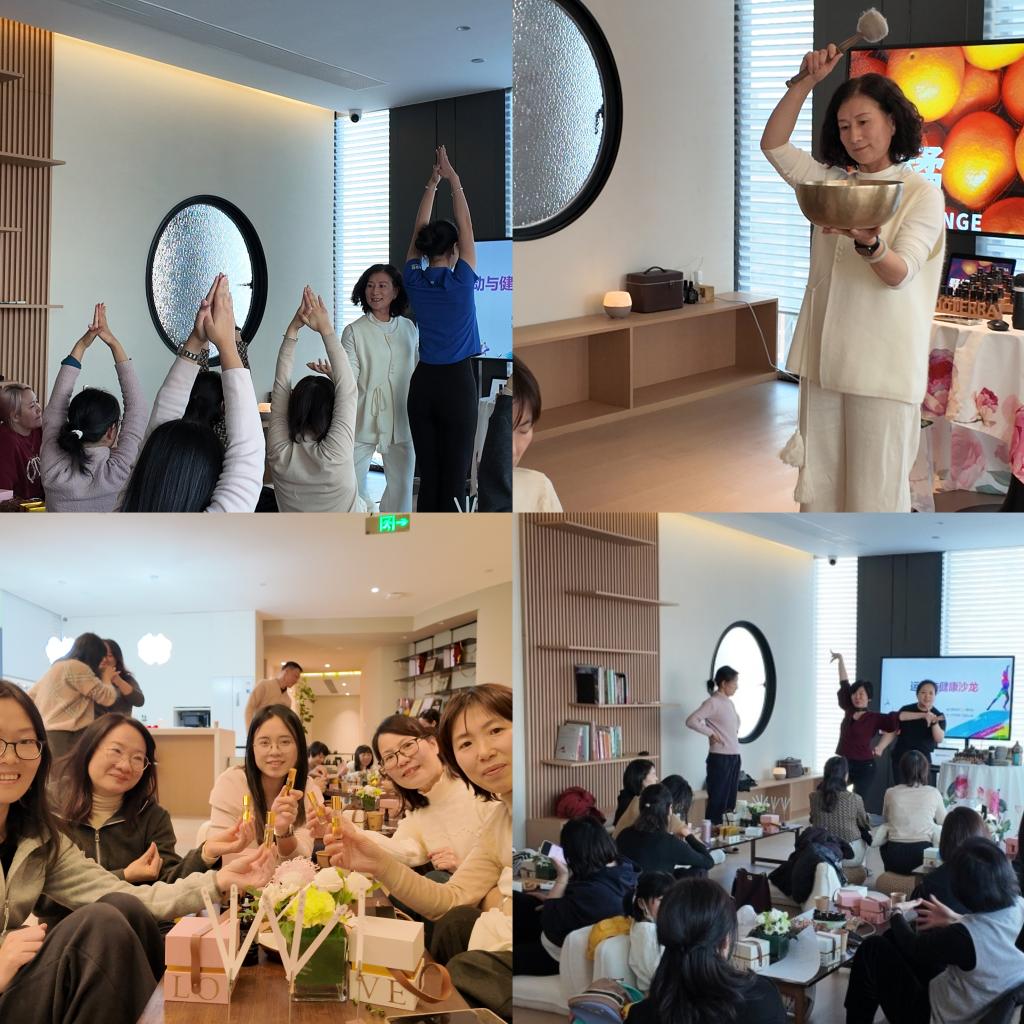 在瑜伽体验环节,专业导师从瑜伽的起源与文化讲起,循序渐进地带领大家学习基础体式。随后的“颂钵芳香音疗”将活动推向高潮。在悠远绵长的颂钵声与舒缓的引导语中,教职工们通过深长的呼吸,逐步释放了日常积累的紧张与疲惫,身心沉浸在难得的宁静与平和之中,实现了深度的放松与修复。
