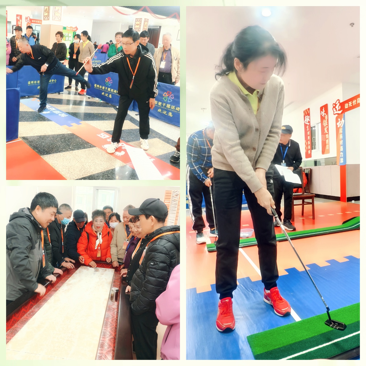本次运动会共设置“乐享漫步”“银发‘浙BA’”“反诈沙包乐”“沙场逐鹿”“一杆进趣”“金秋逸投”“逐空穿越”“反应挑战”八个个人项目,形式新颖、贴近老同志生活。比赛现场气氛轻松热烈,老友们重逢寒暄、笑语不断,赛前互相指导练习,赛中彼此加油鼓劲,洋溢着一片温馨与活力。
